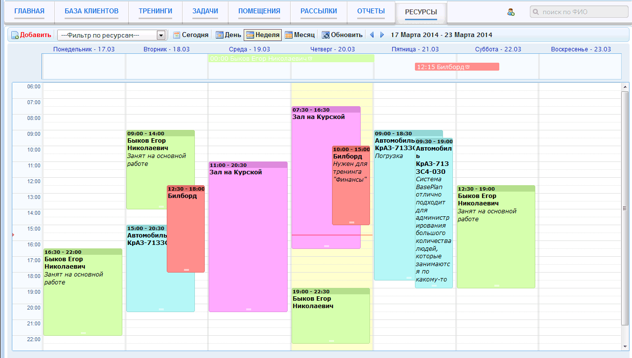 - Цветовая дифференциация ресурсов и фильтрация по ним